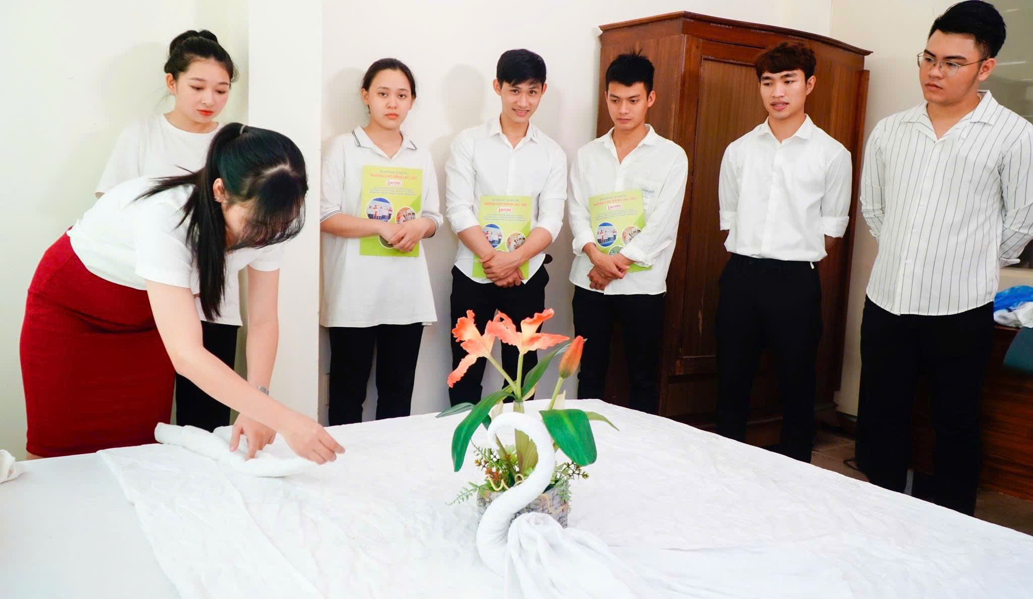 Với gần 20 năm kinh nghiệm, trường Cao đẳng Công nghệ – Ngoại thương (Trước đây là Trường Cao đẳng Lạc Việt) là một trong những nơi đào tạo nghiệp vụ buồng phòng chất lượng hàng đầu cả nước. Chỉ trong vòng 3 tháng, bạn được học đầy đủ kiến thức chuyên môn về ngành cùng những kỹ năng mềm liên quan.
